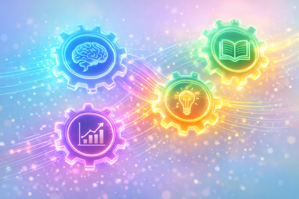The Learning Flywheel is a five-gear system powered by strategic AI use. When these gears connect, they create a self-reinforcing cycle of analysis, action, and improvement that builds unstoppable academic momentum. This method transforms tools like StudyWizardry from passive helpers into active architects of your growth.